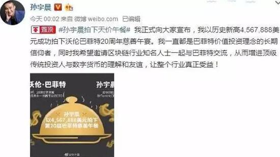 孙老师买了股神巴菲特的午宴机会。