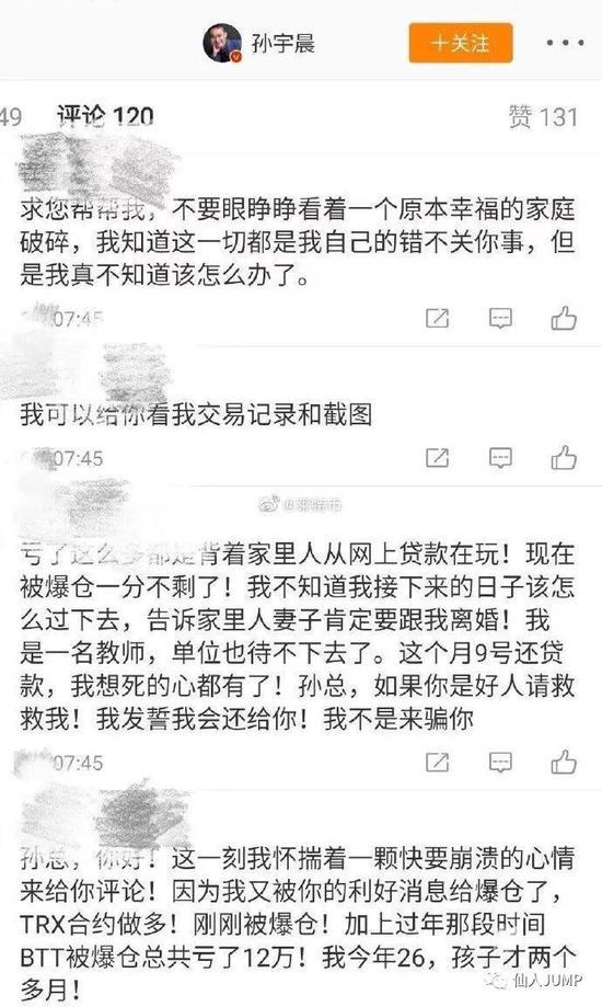 而很多韭菜们,又被孙老师的骚操作给扭弯了腰,甚至到孙老师微博下面求助。