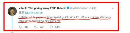 为了蹭热点,他当时还写了TRX比以太坊(ETH)好的七大理由,结果被币圈公认的技术大神V神怼了,直指波场币的复制粘贴功力才是核心竞争力。