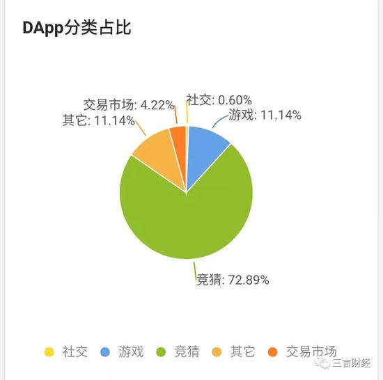 据Dapp数据SpiderStore网站统计,波场所有Dapp应用中,72.89%是竞猜类。而其中最活跃的前三十个应用,有24个竞猜类,比例达到80%。