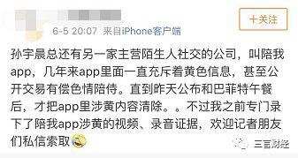 孙宇晨在微博上说,陪我App合法合规。