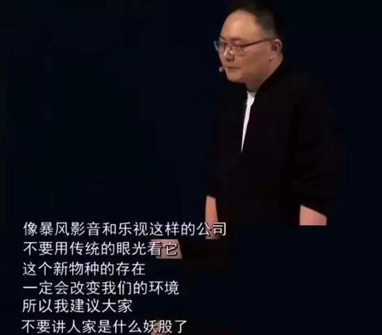 2015年12月31日,第一次开跨年演讲,罗振宇还没有学会要谨言慎行,看着一千五百亿的乐视和四百亿的暴风被人骂成是“妖股”,他在台上表示:“像暴风影音和乐视这样的公司,不要用传统的目光看他,这个新物种的存在,一定会改变我们的环境,所以我建议大家,不要讲人家是什么妖股了。”