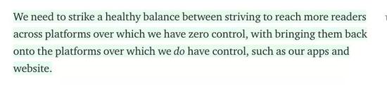 用 Denise Law(《经济学人》Head of Product)发布在 Medium 的原话来说就是:“把读者从自身零控制力的平台,带回到有控制力的平台,比如 Apps 和网站。”
