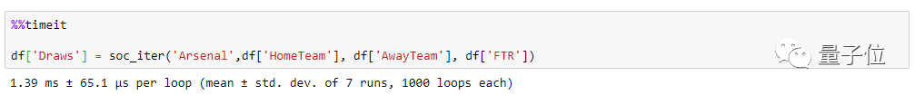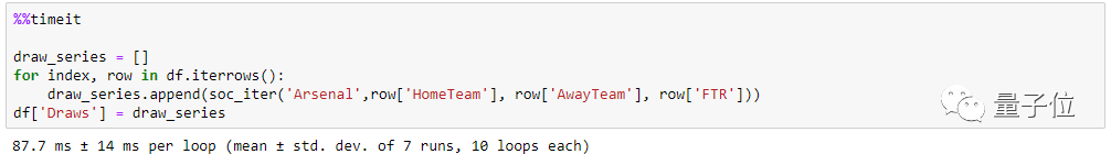 Python不能利用任何内置函数,而且速度很慢。在Benedikt Droste的提供的示例中,是一个包含65列和1140行的Dataframe,包含了2016-2019赛季的足球赛结果。
