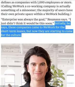 诺伊曼对《连线》表示,最初企业们来WeWork是为了短期租约,但现在它们开始为了这里的文化而来。