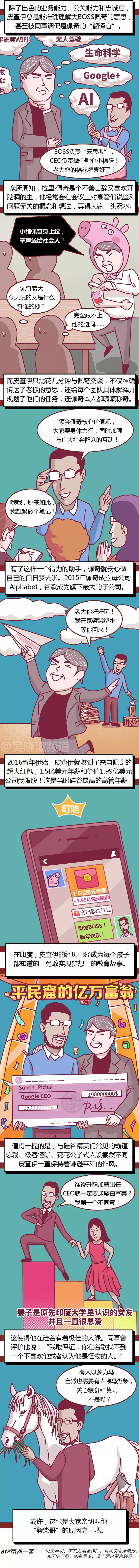 除此之外,皮查伊还善于沟通、调和异见,无论是对内还是对外,人畜无害的暖男形象始终不倒。难怪外界都评价皮查伊是“冷面谷歌的温情掌门人”。