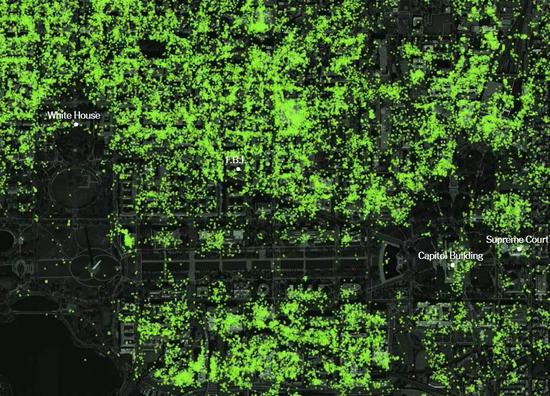 白宫、五角大楼、FBI,政府机构人流、热力分布一清二楚