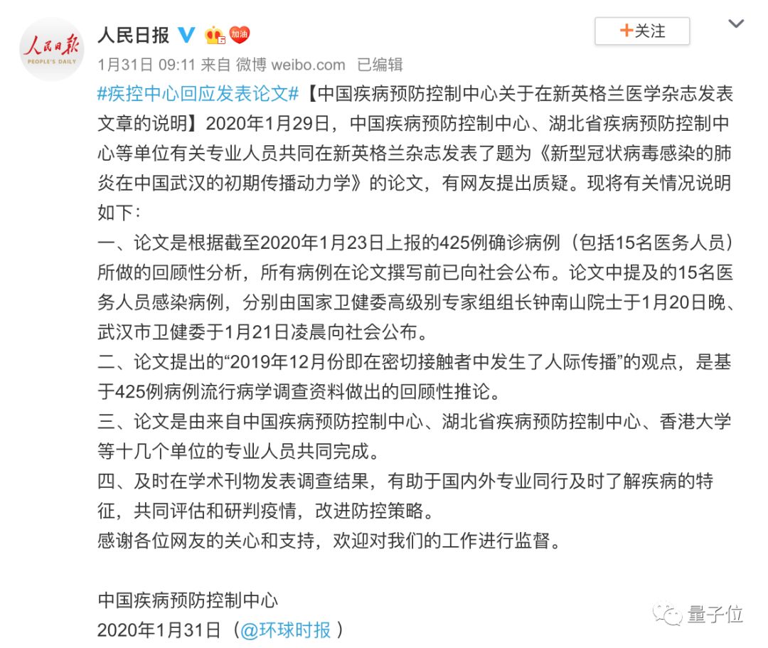 后来CDC不得不在1月30日对此回应,称论文是回顾性分析,所有病例在论文撰写前已向社会公布。