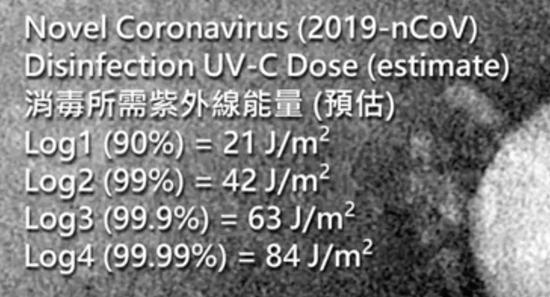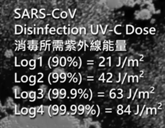 只要达到一定的紫外线能量,它就可以消灭99.99%的SARS冠状病毒: