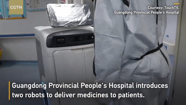 在广东省人民医院,有两台机器人负责给患者递送药品。