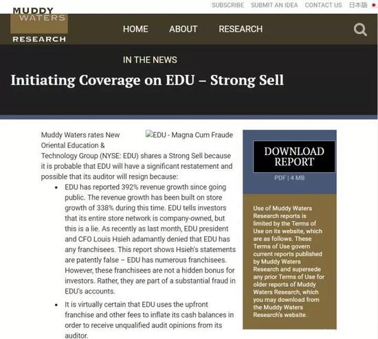 又过了一天,浑水发布一份近百页的报告,强烈建议投资者卖出新东方股票。它所质疑的内容包括: