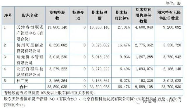 曾松和马琳通过天津睿恒顺资产管理中心(有限合伙)和北京百程科技发展有限公司分别间接持有公司 30.42%和 3.38%的股权,合计持有公司 33.80%的股权。