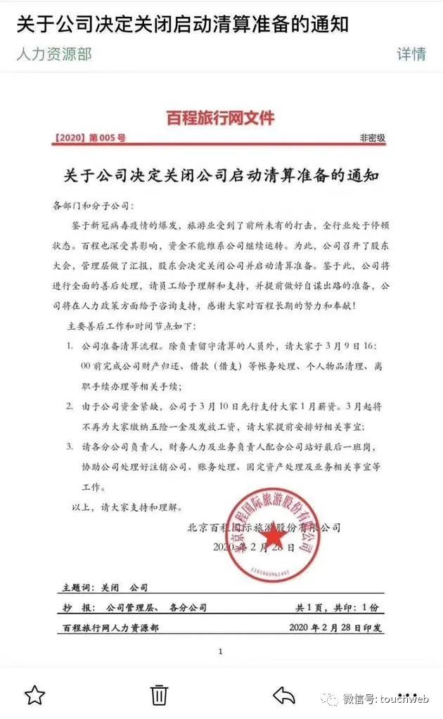 不过,此次肺炎疫情其实只是百程旅行网破产清算的导火索。