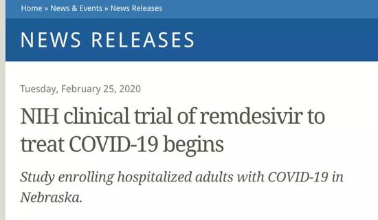 2月25日,美国国立卫生院 (NIH) 也已经在内布拉斯加大学医疗中心率先展开瑞德西韦的双盲临床测试。首批参加测试的人数未知,但 NIH 最终的测试人数至少会有100人(目前美国已确诊人数只有88人),也即未来确诊的患者也会加入到测试中。