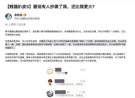 还有用户说:“前两天听说他抄袭这事,我还想去吃个瓜,结果点进主页发现,这些标题我特么全在知乎看过。”