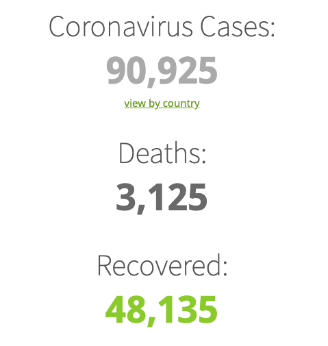 根据最新数据,目前新冠肺炎已经影响了全球76个国家和地区,确诊人数超过9万人,超3000人被夺去生命。