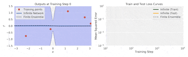 将有限神经网络的集合训练和相同体系结构的无限宽度神经网络集合进行比较,研究人员发现,使用无限宽模型的精确推理,与使用梯度下降训练整体模型的结果之间,具有良好的一致性。