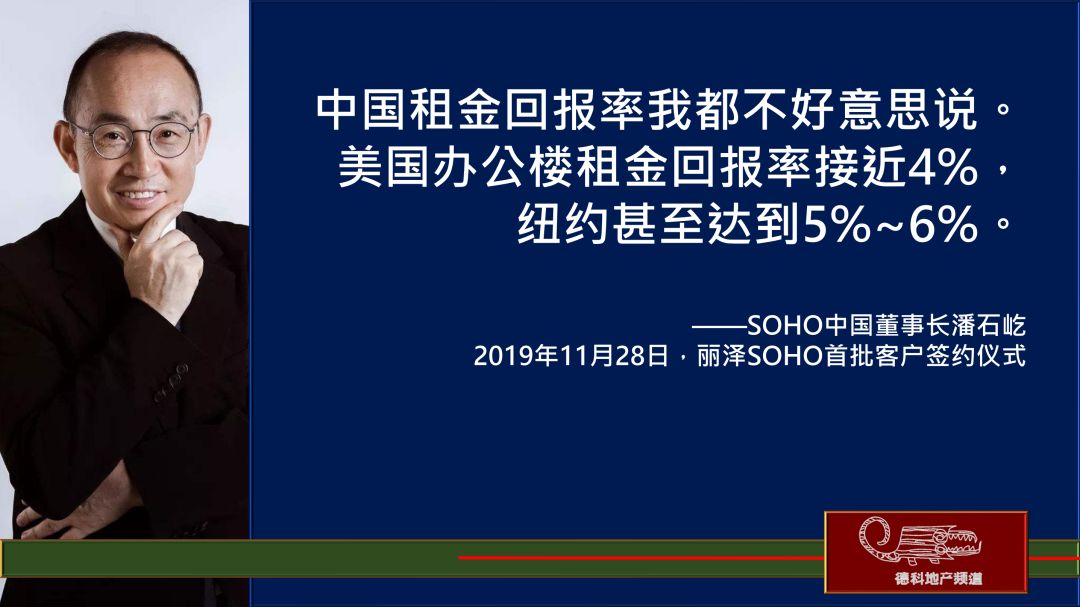 第二个认知是一种抱怨:我手上持有这么多的核心物业,但是租金回报率太低了。我们来看潘石屹几个月前的说法。