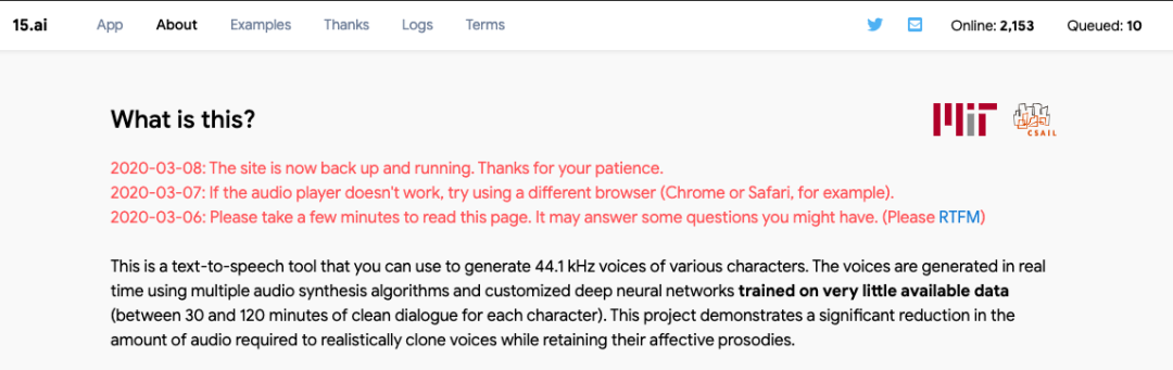 这个文本语音转换工具,可用于生成各种文本的 44.1 kHz 语音。语音是使用多种音频合成算法和经过定制的深度神经网络实时生成的,这些神经网络是在很少的可用数据上进行训练的(每个角色 30 到 120 分钟之间的纯净音频)。该项目表明,克隆声音所需的音频数量显著减少的同时还能保持角色的情感。