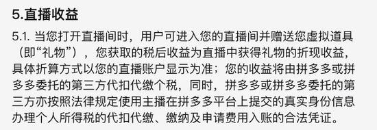 拼多多主播服务协议,明确将直播间获得的礼物收益,写进直播收益之中。并且声明拼多多暂时不收取其他费用。