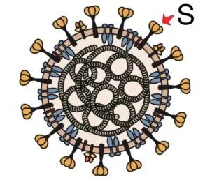 冠状病毒得名于其表面大量的棘突蛋白 (S-蛋白),看起来很像皇冠。棘突蛋白也是新冠病毒和人体细胞结合的所在地。