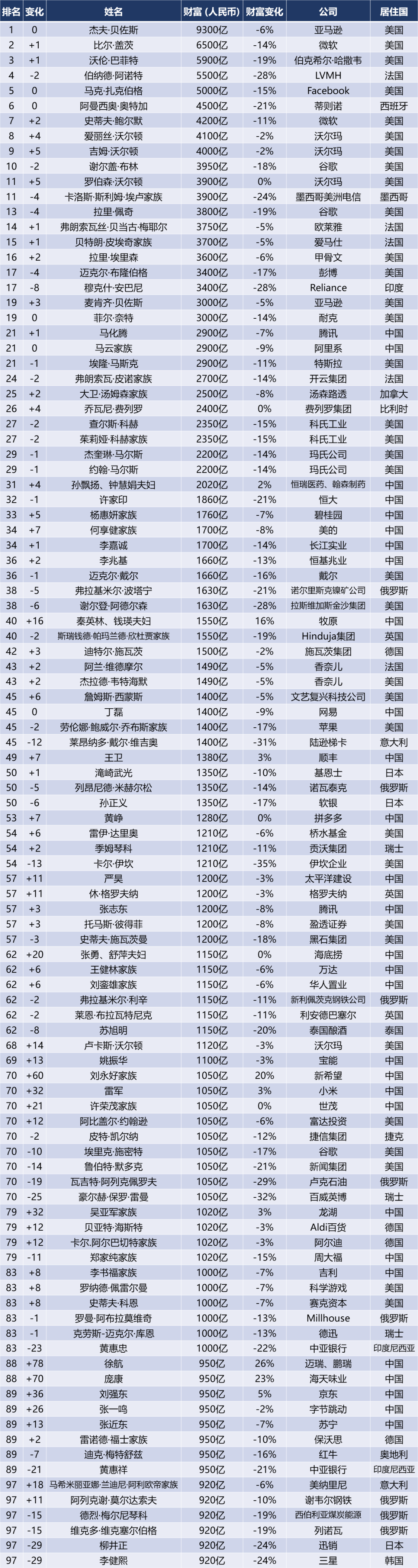 最终损失将在年底揭晓,但已有100位掌握全球最多财富的企业家,感知到了它的财富摧毁力。