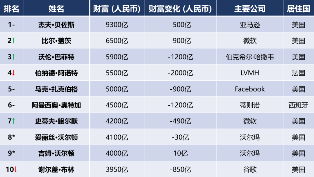 1月份的时候,前四名的企业家财富均突破了千亿美元大关,但现在,只剩下杰夫·贝佐斯,他的财富也缩水了500亿元人民币。