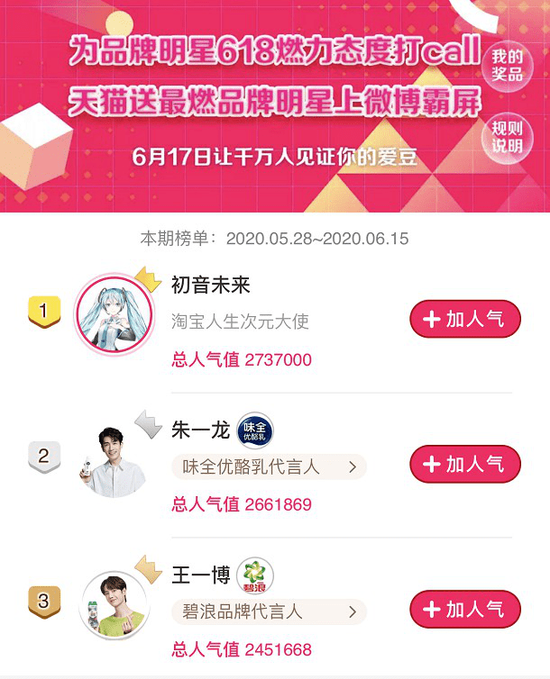 此前网上盛传洛天依坑位费90万,这一数字甚至比李佳琦、薇娅等顶级主播的报价还高;洛天依4月首播的人气接近罗永浩,在线观看人数最高为270万;而初音未来6月初入驻淘宝,截至6月15日积累2737万人气值,并超过王一博、朱一龙等明星登顶天猫6·18明星榜。