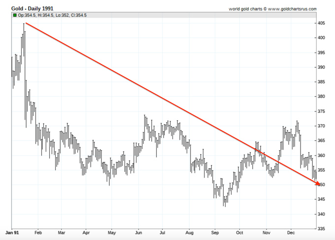 在这期间,金价主要随着全世界为和平解决科威特问题的努力和政治斡旋而变化,人们对战争与和平的忧虑一直是金价的重要支撑力。在安理会规定伊拉克必须撤军的最后期限1991年1月16日,在战争恐慌的推动下金价突破400美元。