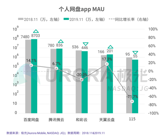 目前,百度网盘的注册用户达到7亿,付费用户累计数千万。根据极光大数据发布的《2019年个人网盘行业研究报告》,截至2019年11月,百度网盘的月活用户达到8703万,月活用户份额达82.9%。