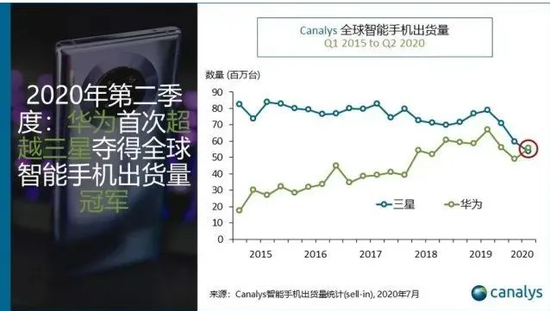 日前,Canalys发布全球二季度手机商中,华为以5580万的出货量超过三星,成为了全球最大手机销售商。