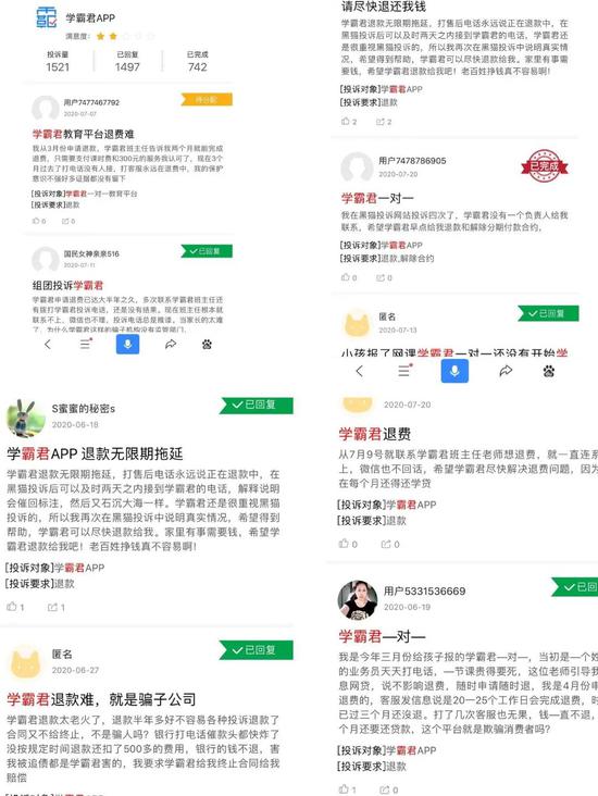 不止嗨学网,沪江网校、51talk等企业也曾被投诉退费难。学霸君最近也因为来自黑猫投诉上的1500多条投诉引起了不少人关注。