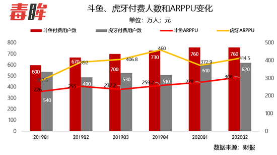 两家平台在运营上各有优势。有YY基因的虎牙擅长运营变现,今年二季度,虎牙付费用户为620万,ARPPU(每付费用户平均收益)为414元;此前斗鱼付费用户数更多,但平均付费能力相对较弱,现在斗鱼慢慢赶上,今年二季度斗鱼付费用户为760万,ARPPU增长至306元。