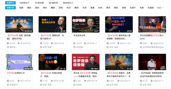 在此之前,老罗的粉丝基本盘,大多来自科技互联网产业,是由直男、程序员、数码产品发烧者们所构成的,女性粉丝并不多见。而五期脱口秀大会后,老罗语录再度更新了起来。00后们组团考古老罗语录,从「不躲枪子的鸟」笑到「照镜子的牛人」,在B站,长达3个半小时的音频版老罗语录被拆分成一个个独立的小视频,播放量从几十万到几万不等。