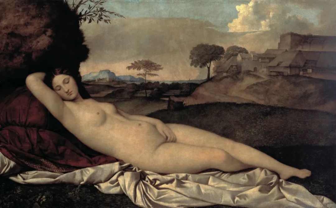 再比如,乔尔乔内的这幅《沉睡的维纳斯》,右下角是不是什么都没有。