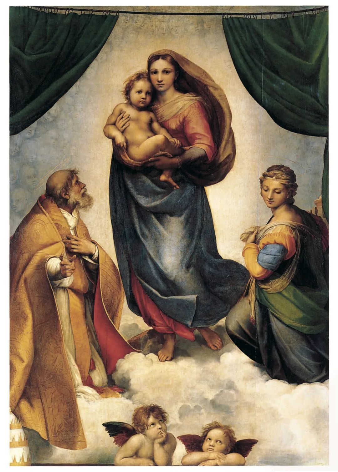 现在,你再看拉斐尔的这幅《西斯廷圣母》。