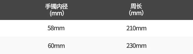 手镯有:内径58mm、内径60mm,两种手围可选。
