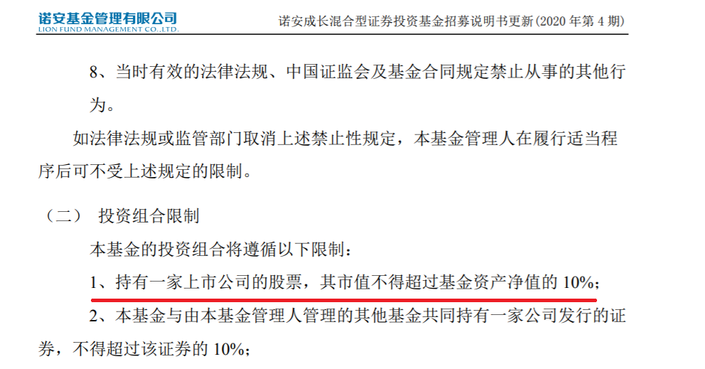 不仅如此,诺安成长混合基金持仓市值最大的圣邦股份占了基金资产净值的12.64%,超过基金招募说明书约定的10%上限。