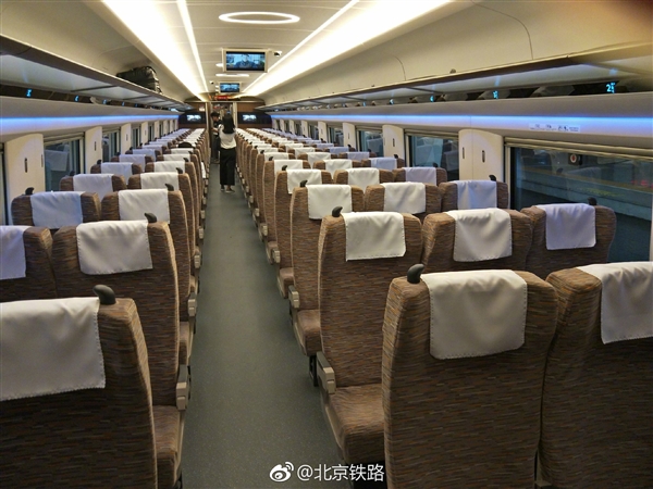 据了解,“复兴号”试验时速可达400公里,设计寿命比“和谐号”长10年,且车内配套设施更加完善,座位空间更加宽敞。比如,列车高度从从3700毫米增加到了4050毫米,车内空间更大,车内噪声明显下降,座位间距更宽敞。
