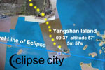 ·全食:5分钟以上; ·晴天概率:70%左右 ·观测地:嬉子湖度假村,泡桐山顶等。 ·主要活动:2009国际天文年桐城市日全食科普节开幕式;中国科技大学:公众科普报告会;中国科技大学:中国考古天文学国际学术研讨会等。 |