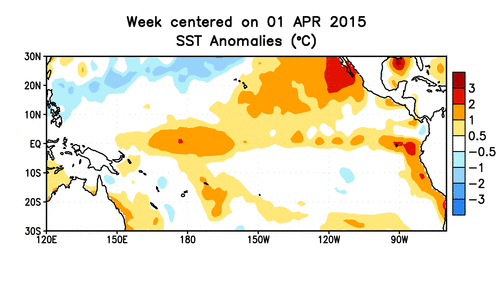 2014年5月,热带中东太平洋海温偏高0.5℃以上,并持续了6个月,这标志着一次新的厄尔尼诺事件形成。之后,东太平洋曾一度有了“退烧”迹象,但到今年3月,高烧又复发了,而且温度一路上飙,5月上旬时甚至超过了1.3℃,已经成为了强厄尔尼诺事件。