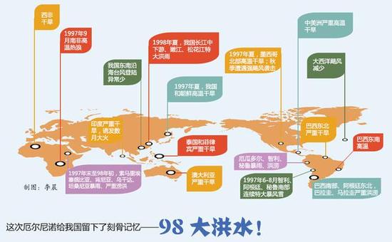 厄尔尼诺到第二年4月就基本结束,但其影响依然持续,甚至更为触目惊心,在1998年夏,长江依然发生了全流域性特大洪水,嫩江、松花江发生百年不遇的特大洪水。全国受灾面积3亿多亩,绝收7900多万亩,直接经济损失2500亿人民币……