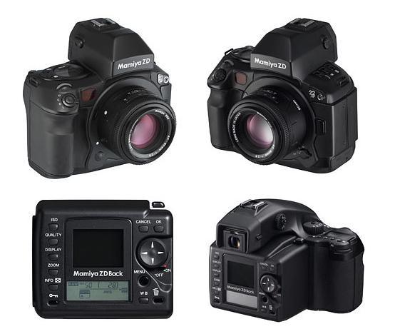除了后背,玛米亚还同时推出了玛米亚ZD这款一体化120篇幅数码单反相机,“Mamiya ZD”和“Mamiya ZD Back”均配备一枚36x48mm中画幅尺寸的CCD,像素高达2200万。“Mamiya ZD”是一款独立的数码相机,能够支持所有玛米亚以往的645系统镜头。相机背后搭配了一块1.8英寸约13万象素的LCD显示屏。相机支持CF/SD卡存储以及支持1394火线进行数据传输。