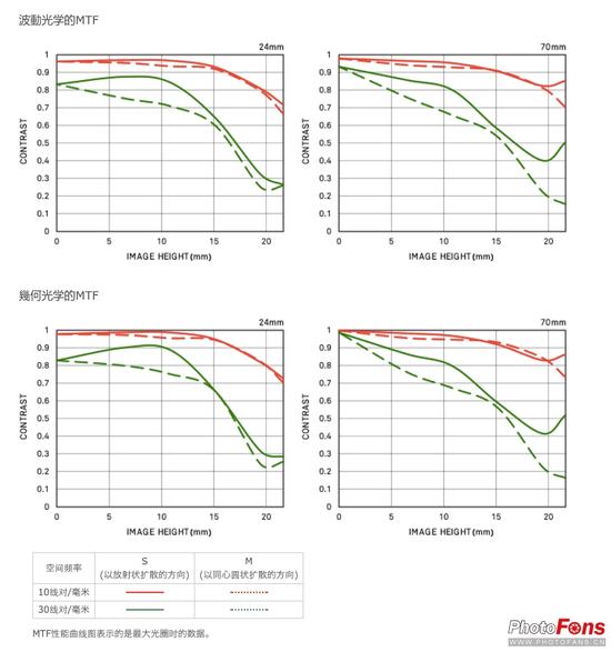 虽然测试严苛,但我们从上图的MTF曲线中不难看出适马24-70mm F2.8 Art的表现还算相当不错,无论24mm还是70mm的中心与边缘画质都达到了很高的数值,并且衰减情况下滑并不多。