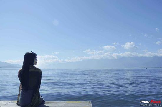 我们也可以尝试些新的花样,可以把人物放在右下角或者左下角,这种方式的构图会给人一种清新的感觉,拍出的照片也会更有意境,不过要注意这样构图的背景不要太过杂乱,否则会让照片看上去主次不分。