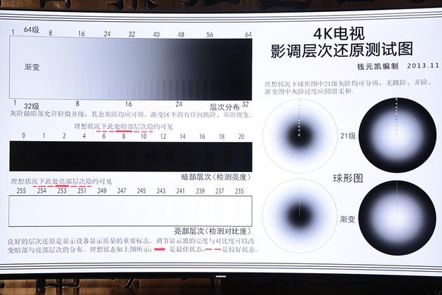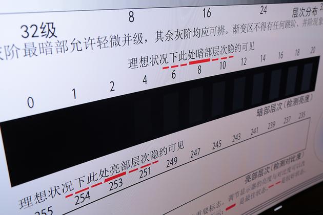在影层测试图中可看出,灰度最低可达到4的级别,亮度也为254,达到甚至超过一般4K屏幕的标准。