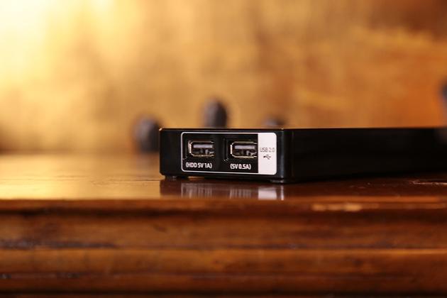 背部右侧为电源接口。为了增强整体性,左侧仅保留了几个常用接口,并加入了隐藏盖的设计。