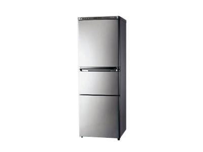 冰箱带有制冷装置的储藏箱。用于冷冻、冷藏食品或其他物品。家用电冰箱的容积通常为20~500升。 额定耗电量冰箱说明书中所标的额定耗电量是按国家标准,在环温25℃,冷藏室温度控制在5℃,冷冻室温度控制在-18℃情况下,不开门,稳定运行24小时所测的数值。 直冷式 可以看到冷冻室抽屉之间有一排排的制冷管路,无抽屉的冰箱这些管路在冷冻室内胆外层。直冷式是最早期的制冷技术,优点是结构简单,成本低,食物不易风干的保鲜效果好些,缺点是箱内温度不太均匀。 风冷式制冷管路隐藏,利用风扇将冷风吹进冷冻室和冷藏室,优点是箱内温度均匀,制冷效率高(类似给热水吹气冷却快的道理),但结构复杂,成本较高。较高档的冰箱采取风冷的技术较多,象对开门的400升以上大冰箱普遍采用。 间、直冷混合式利用直冷式与风冷式的优点,冷冻室用风冷,冷藏室用直冷。这种方式技术复杂,较少见。 BCDB是电冰箱的代号,C表示冷藏箱,CD表示冷藏冷冻箱,D表示冷冻箱,BCD就是冷藏冷冻电冰箱。 变频冰箱变频冰箱采用变频压缩机,并在冰箱控制系统中增加了变频控制器,通过改变压缩机的转速可以改变冰箱的制冷量。由于变频压缩机和变频控制器的成本较高,使得变频冰箱的价格也较高,现在一般用在高档冰箱产品中。 冰箱压缩机冰箱制冷系统中的动力机械,它将冰箱的制冷剂压缩成高压气体,在整个制冷系统中运行,完成制冷任务。