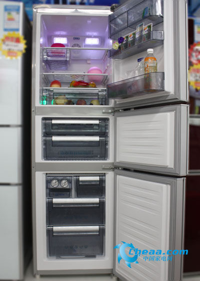 美菱BCD-242HE3B冰箱总容积为242升,其中冷藏室容积为128升,特设紫外灯(uv-lamp)及纳米TiO2金属薄膜高效杀菌除臭装置,使除臭保鲜发挥得更彻底,且在冰箱的果菜盒侧面设置有独特的保鲜灯,对蔬菜有意的光波使蔬菜长久保持鲜活状态。