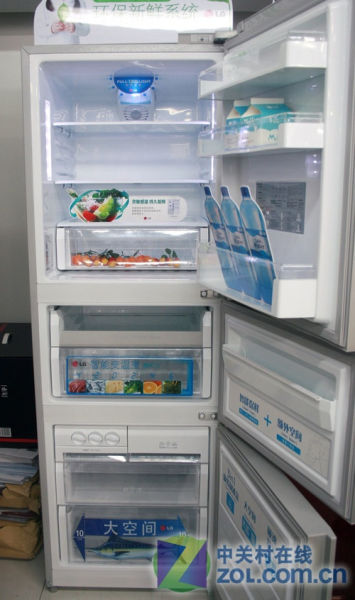 [中关村在线家电频道原创]冰箱内温度的波动大小很大程度上影响着冰箱的性能,影响温度的因素也有很多种,照明带来的温度波动也是其中之一,因此,现在很多冰箱都开始在这方面下功夫,尽量使其对温度的影响降到最小。今天,笔者就为大家带来一款LG GR-S28NDF(参数 图片 论坛)三开门冰箱,它采用LED冷光源照明,几乎不产生热量,有效的抑制了冰箱内温度的波动。目前这款冰箱的价格为5880元,喜欢的朋友可以关注一下。